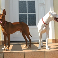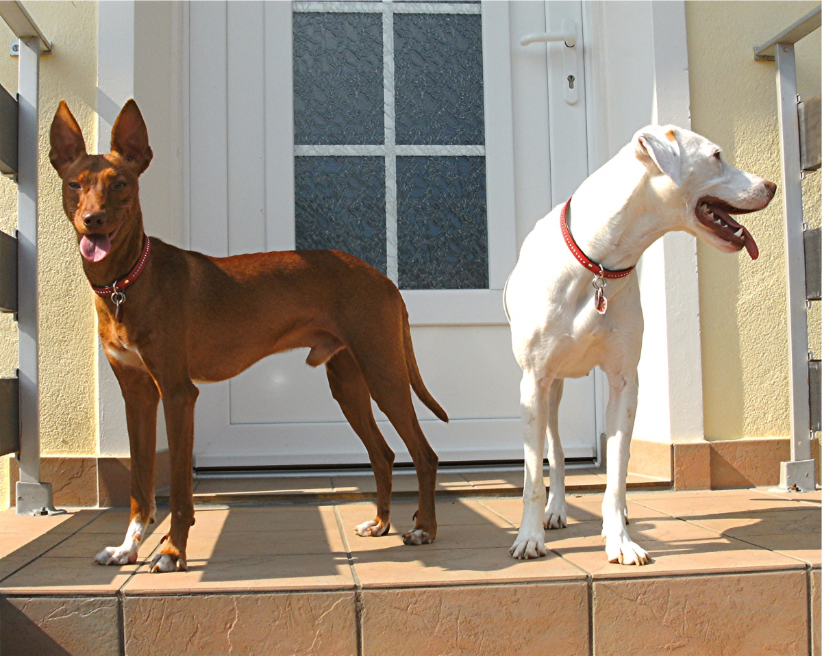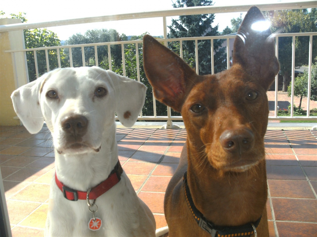Notre duo de choc, Bianca et Bo. Les deux sont pleins de charme, très curieux et enjoués! Bianca, croisé dalmatien de 2 ans, et Bo, podenco andalou de 3 ans, sont originaires d'Espagne et ont élu domicile en Alsace.
